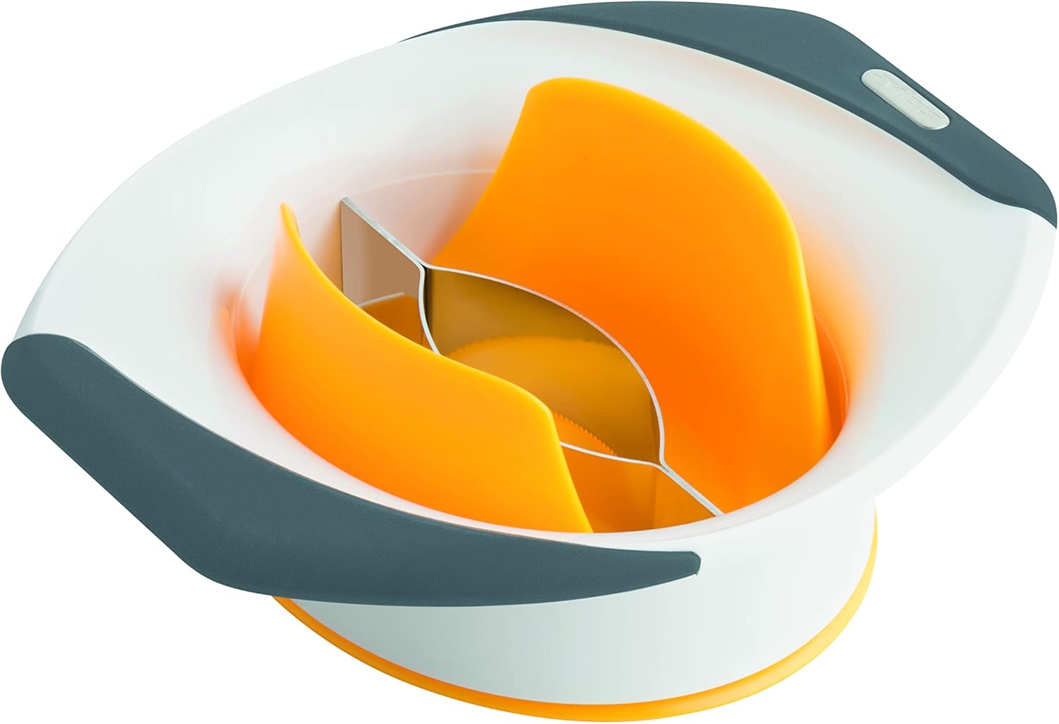 • Dénoyaute, tranche et épluche les mangues sans désordre