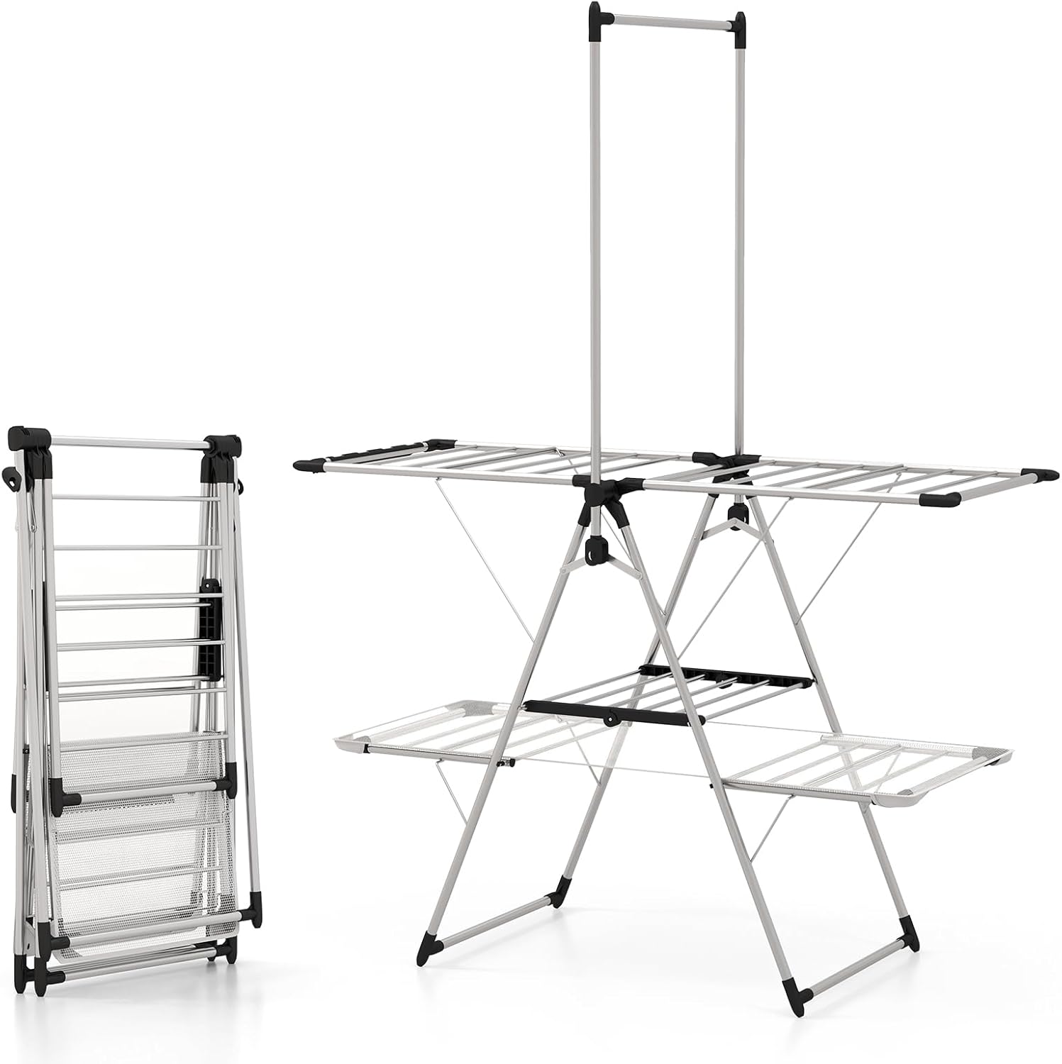 COSTWAY - Séchoir à Vêtements Pliable - Ailes Réglables - Rangement Partitionné – €26,99