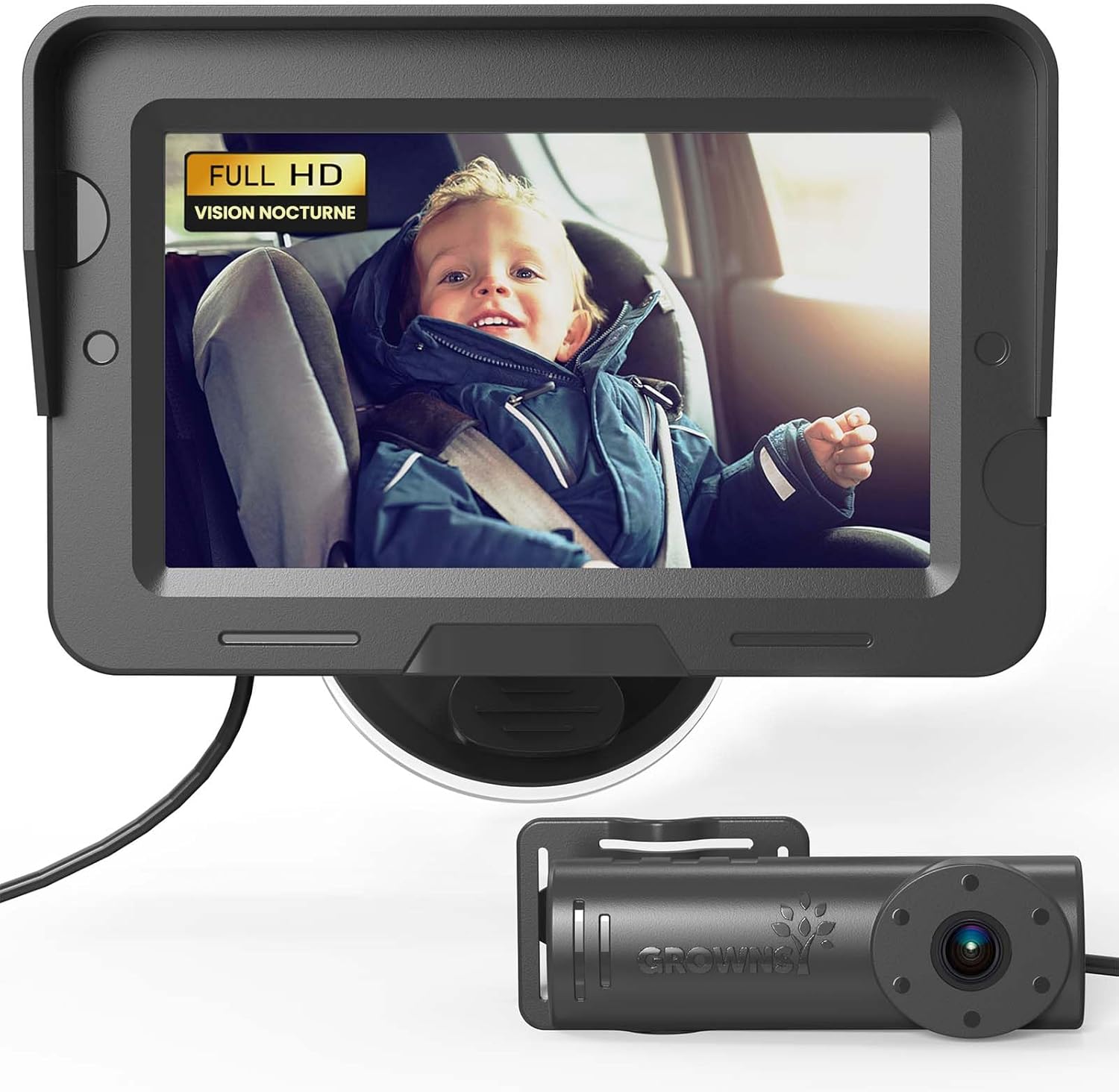 Gardez un œil sur votre enfant en toute sécurité avec la caméra de voiture bébé GROWNSY, même de nuit.
