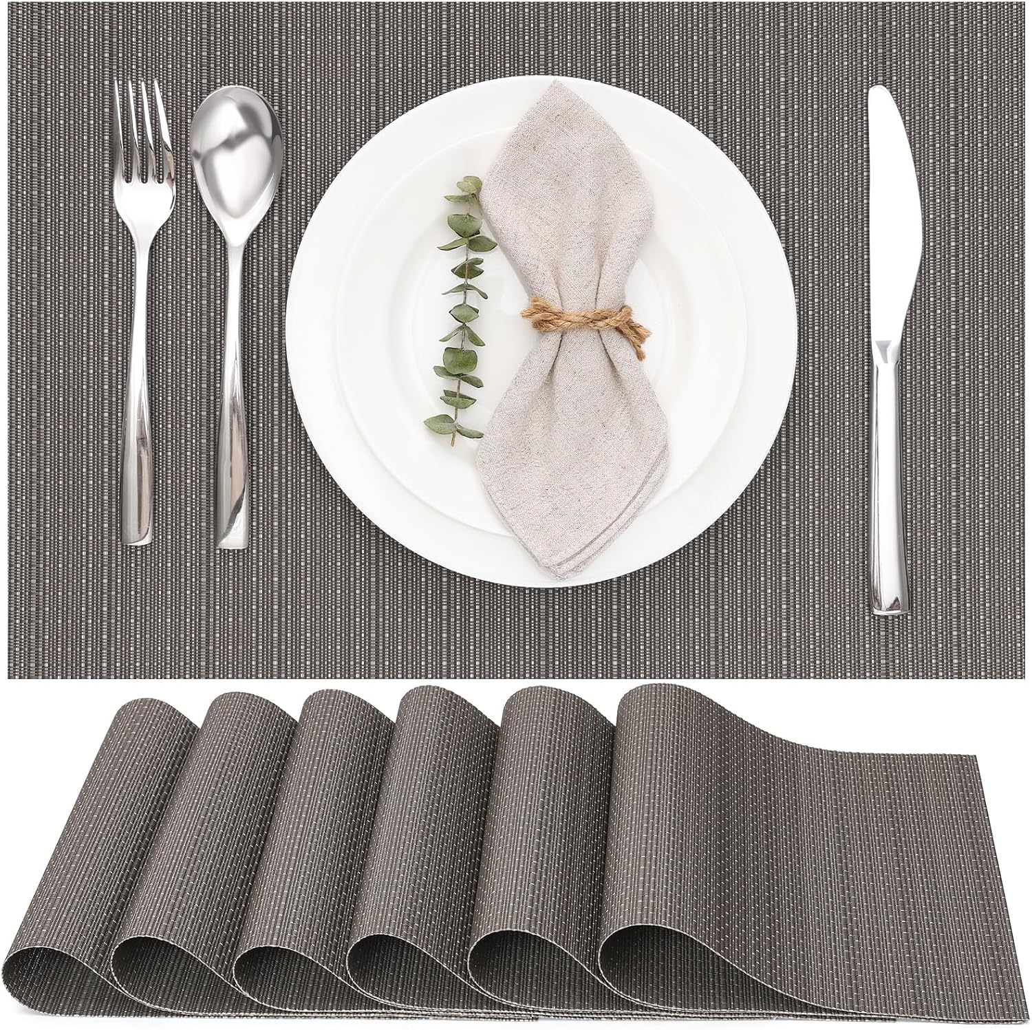 Protégez et décorez votre table avec le set de 6 sets de table Myir JUN, parfaits pour la maison et les restaurants.