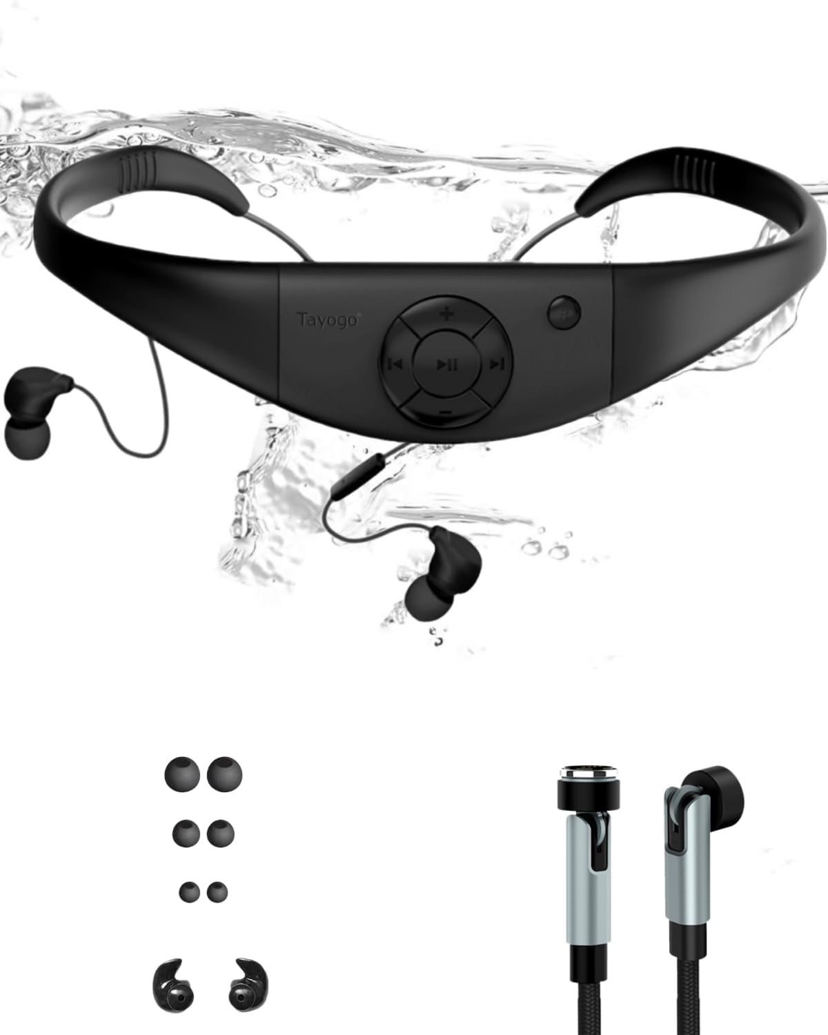 Écoutez votre musique préférée en nageant avec le lecteur MP3 étanche Tayogo, doté de 8 Go de mémoire et d'une autonomie de 20 heures.